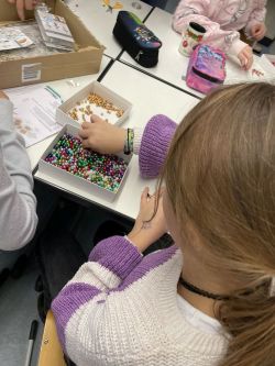Die Feier war liebevoll vorbereitet und bot den Kindern zahlreiche kreative Angebote. An verschiedenen Bastelstationen konnten sie Perlenengel, Drahtsterne und Papiersterne gestalten. Mit viel Geschick und Begeisterung entstanden wunderschöne Kunstwerke, die nicht nur die Augen der Kinder zum Leuchten brachten, sondern sicher viele Weihnachtsbäume schmücken oder als kleine Geschenke unter dem Christbaum landen werden. Besonders beliebt war auch das Bemalen von weihnachtlichen Anhängern. Hier konnten die Kinder ihrer Fantasie freien Lauf lassen und individuelle Motive erschaffen, die als Dekoration oder Geschenkideen genutzt werden können. Die Konzentration und Freude, mit der die jungen Künstlerinnen und Künstler bei der Arbeit waren, war beeindruckend und machte deutlich, wie viel Spaß sie an dieser kreativen Beschäftigung hatten.