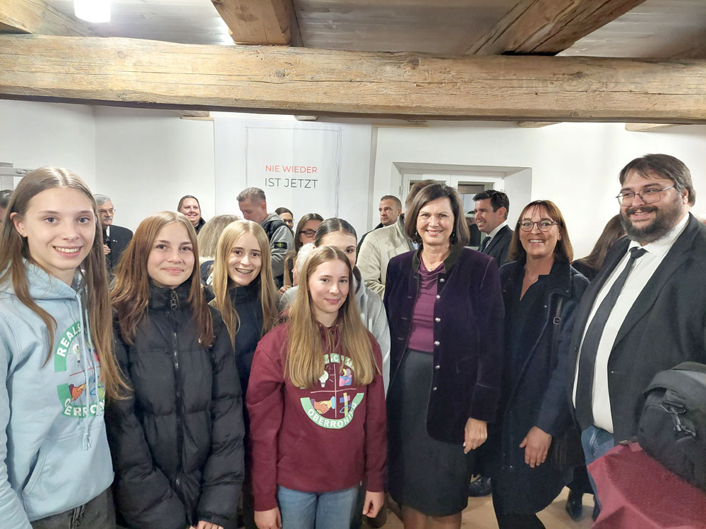 In einer berührenden Gedenkfeier, an der sich unsere Realschule beteiligte, hat der Markt Schierling an die Tötung von Theres Wallner als Opfer der „Euthanasie“ erinnert. Vor 85 Jahren haben die Nationalsozialisten damit begonnen, psychisch Kranke und behinderte Menschen als „unwertes Leben“ zu ermorden. Dieser grausamen Ideologie fiel auch die Schierlingerin zum Opfer. „Nie wieder ist jetzt!“ - Unter diesem Leitspruch hat der Markt Schierling die Gedenkveranstaltung in der Pfarrkirche ausgerichtet. Wie bedeutungsvoll dieses Gedenken ist, bewies auch die Anwesenheit von Landtagspräsidentin Ilse Aigner. Weitere Gäste waren Magister Florian Schwanninger, Leiter des Lern- und Gedenkortes Schloss Hartheim bei Linz, sowie Vertreter aus Politik und Kirche. Auch Verwandte der Ermordeten sowie 90 geladene Gäste nahmen an der Feier teil. „Wir brauchen mehr denn je die Erinnerung, das sind wir den Opfern schuldig“, sagte die Landtagspräsidentin in ihrem Grußwort. „Die Worte ‚nie wieder’ sollten uns wachsam sein lassen“, so Aigner. Demokratie sei keine Selbstverständlichkeit. Achtsam sollen vor allem auch die jungen Menschen sein und sich daran erinnern, wie es damals anfing. Fünf Schülerinnen unserer Realschule Oberroning hatten die große Ehre, diese Gedenkfeier mitzugestalten und rezitierten Teile aus der Predigt vom 3. August 1941 des Münsteraner Bischofs und Nazigegners Clemens August Graf von Galen. Die Teilnahme war uns als Schule besonders wichtig, zumal uns Herr Wallner jedes Schuljahr mit einem eindrücklichen Vortrag an die Opfer der NS-Zeit erinnert. Beim anschließenden Besuch im alten Schulhaus hatten unsere Schülerinnen noch die Gelegenheit zu sehen, wie sich die Landtagspräsidentin ins Goldene Buch eintrug. Besonders stolz machte es die Mädchen, dass sie Ilse Aigner vorgestellt wurden und natürlich durfte die Oberroninger Delegation (Schulleiter Norbert Hintermeier, Michaela Reimann, Elena Just, Miraella Wallrapp, Christina Betz, Juliana Fischer, Nina Katic und Emily Kindler) noch ein Foto mit der Landtagspräsidentin machen.