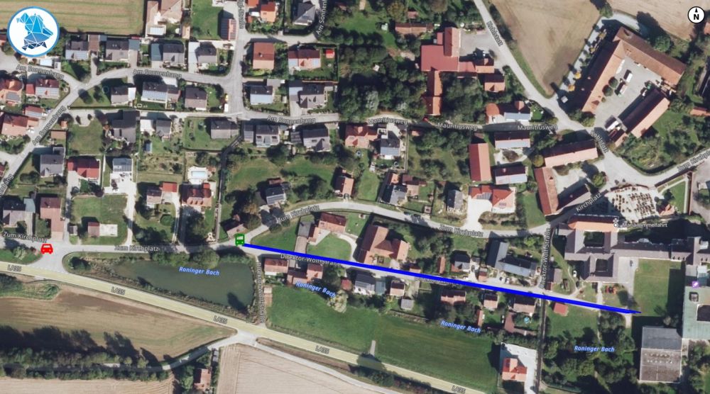 Die Busse fahren von Westen (an der Kirche vorbei) nach Osten (durch den Ort) und verlassen Oberroning wieder Richtung Landstraße. Die Schüler der 5. Klassen der Mittelschule bleiben sitzen und steigen am Friedhof aus, um von dort aus zur „Kleinen Schule“ (Kohlstatt) zu gehen.